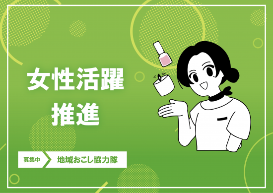 本町の人口動態を分析した結果、社会減の主な要因である若年層の女性のUターンを促すことが必要となっています。町内における女性の活躍を推進することで当該年代のUターンを促すため、女性が活躍する社会、女性にとって魅力的なサービス、業種の創出を目指して活動する人材を募集します。