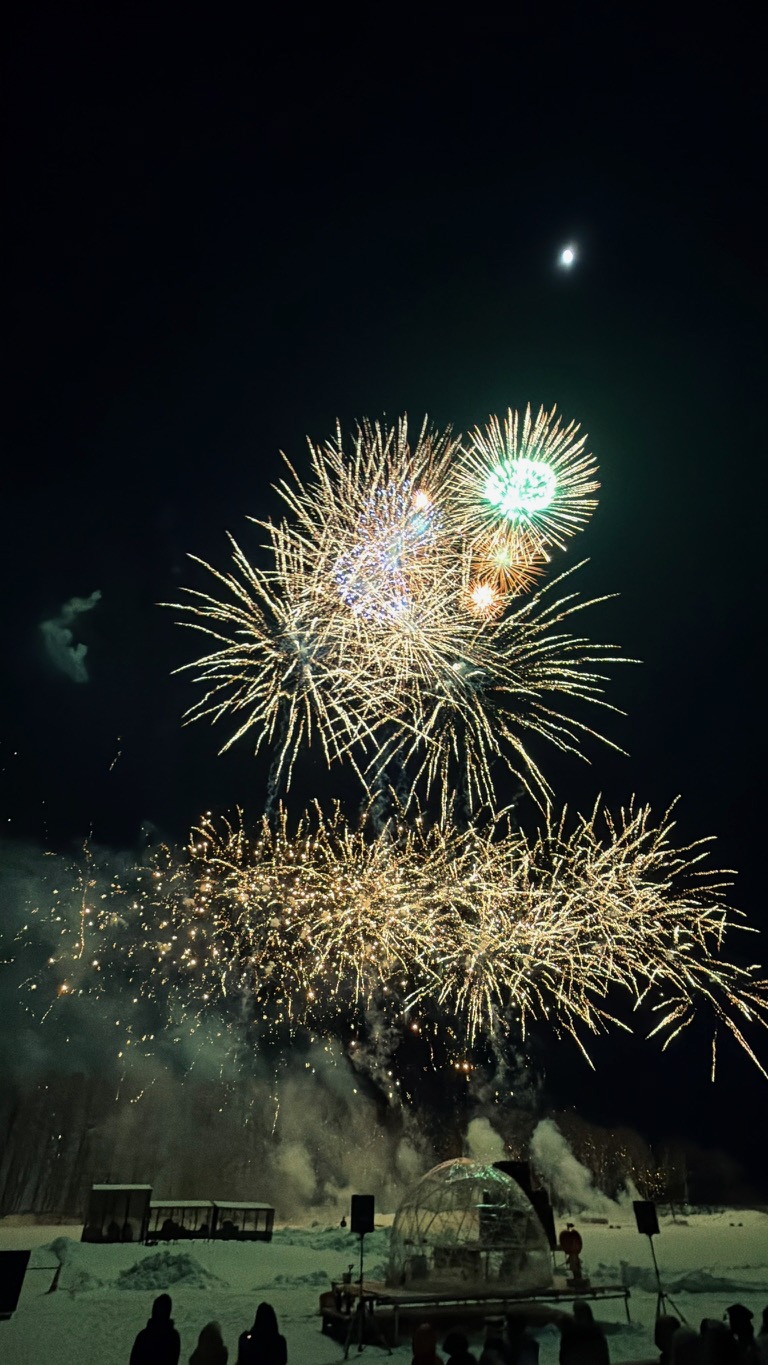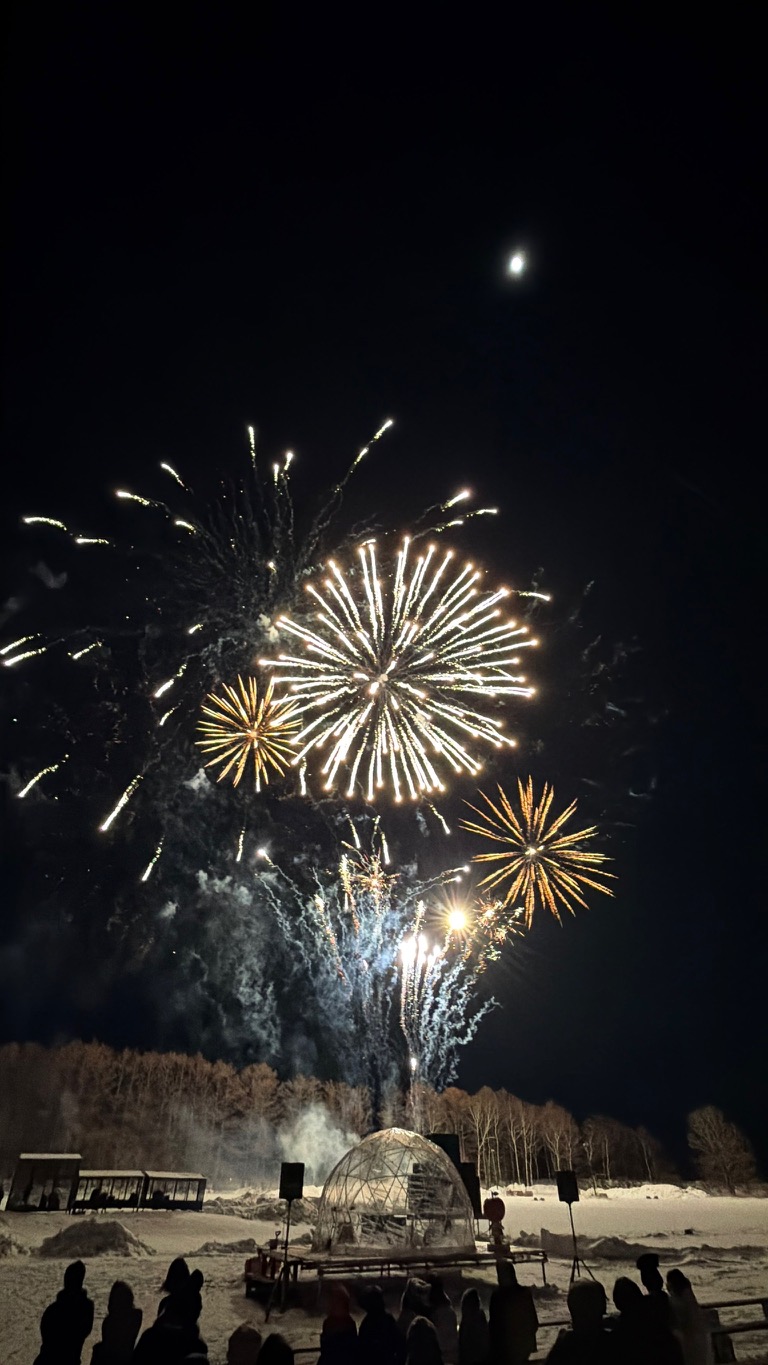 暴風雨による直前の日程や実施内容の変更もありましたが、露天と花火の打ち上げには130名程度の観客が来場し、見慣れたいつもの夜空が花火で彩られ住民の記憶に残る体験となりました。