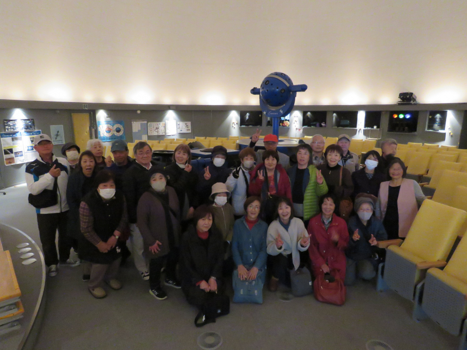 今回はバス見学ということで、釧路市の「こども遊学館」においてプラネタリウムを鑑賞しました。プラネタリウムでは、現在見頃となっているの「レモン彗星」の紹介や、気球で宇宙を目指す企業の取り組みが紹介されました。美しい星空の映像に、皆さんからは「感動した」「彗星を見てみたい」との声も聞かれました。その後、館内を自由に見学し、展示や体験を楽しんでいただきました。最後に道の駅白糠「恋問館」にて昼食と買い物を行い、参加者は終始満足した様子でした。