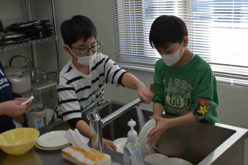 調理は子どもたちを中心に行い、分からないところは職員が指示を出しました。