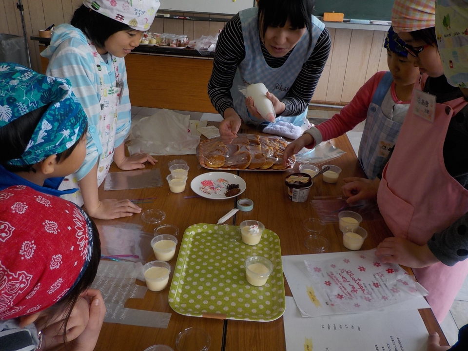 今回のスイーツづくり教室では、簡単プリン、どら焼きづくりを行いました。