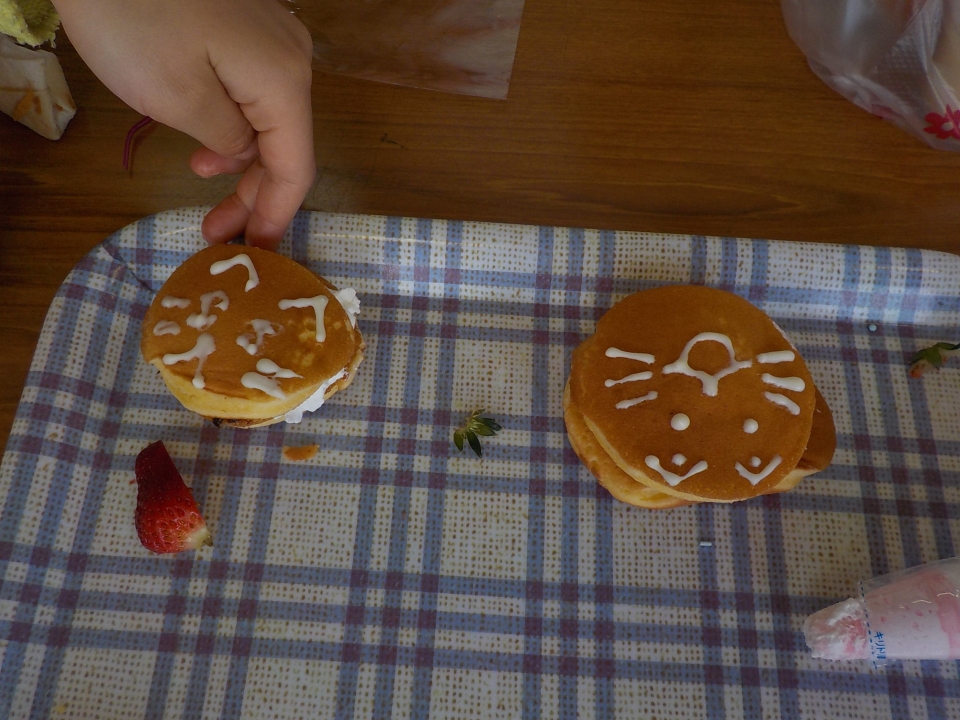 そしていよいよ、プリンとどら焼きの飾りつけです!