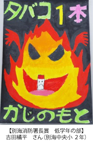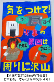 別海消防署では、火災予防の一環として、毎年小中学生を対象に防火ポスターコンクール(後援 別海町教育委員会)を開催しています。