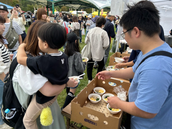 乳和食の調理は保護者にもご協力いただき、当日は200食以上の乳和食を用意しておりましたが、ブースには配布前から長蛇の列ができ、配布を始めてから数十分ほどで完売しました。