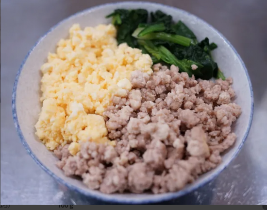「別海NEW!三食そぼろ丼」は、通常の三食丼で用いる調味料をホエイに置き換えることで、減塩を図りながらカルシウムの量を増やし、ホエイのコクにより素材本来の味はそのままで、調味料の使用を抑える工夫がされています。また、ご飯もホエイで炊くことで、より多くのカルシウムを摂取することができます。