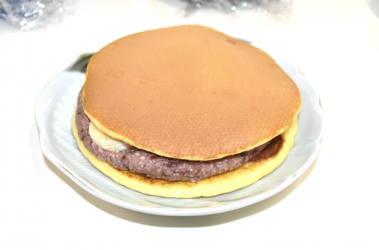 別海町の良さを知ってもらうために、和菓子といえば…のどら焼きを作りました。生地を作る際に、本来は水を使うところを牛乳にすることで味をまろやかにし、カルシウムやビタミンBを摂取できます。また、あんこにカッテージチーズを混ぜることで、あんこに足りない栄養を牛乳で補っています。