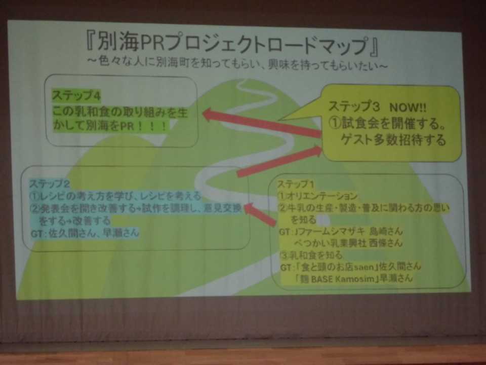 生徒の活動には、乳和食を通して別海町をPRすることでたくさんの人に別海町を知ってもらい、町が発展してほしいという願いが込められています。
