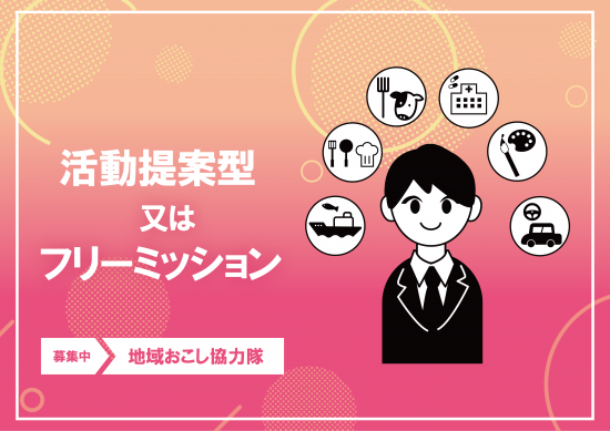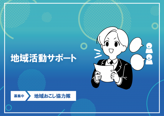任期満了後、行政のアウトソーシングを想定した地域協力活動を行う人材、又はヨソモノ目線を活かした”柔軟な発想”と”自身の持つ技術・経験・人脈”を掛け合わせた地域活性化に取り組む人材を募集します。