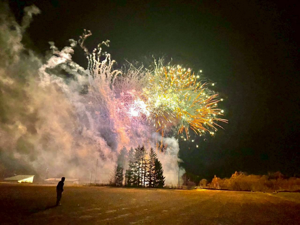 暴風雨による直前の日程や実施内容の変更もありましたが、露天と花火の打ち上げには130名程度の観客が来場し、見慣れたいつもの夜空が花火で彩られ住民の記憶に残る体験となりました。
