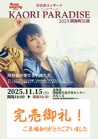 岸谷香コンサート「KAORI PARADISE 2025」別海町公演開催事業【町内公共施設イベント集客型補助金】
