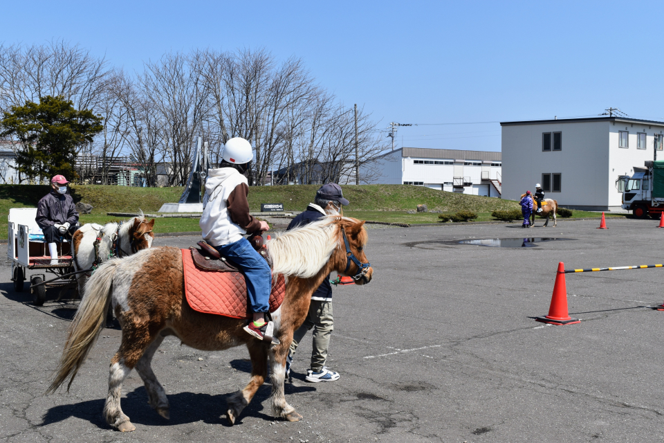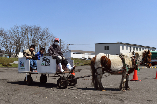 毎年恒例のポニー乗馬・馬車体験、そして別海消防署の協力のもと、消防車・救急車の乗車体験を開催していただきました。