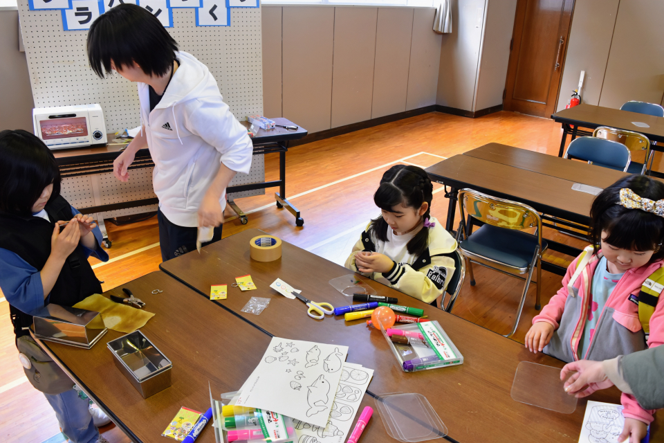 おかしつり、ヨーヨーつり、プラバンづくり、ぬりえコーナー