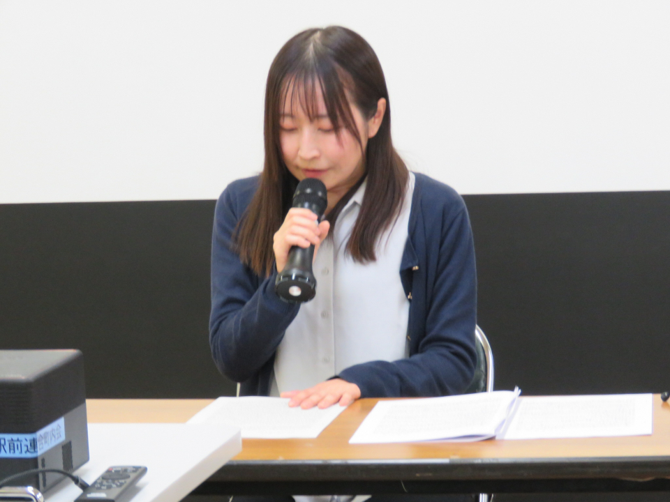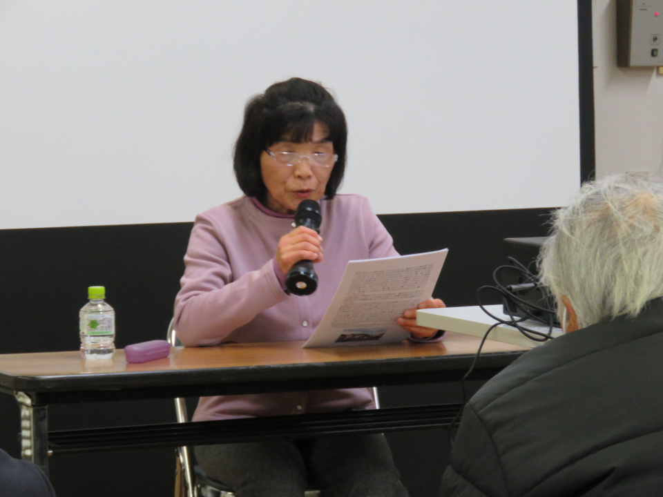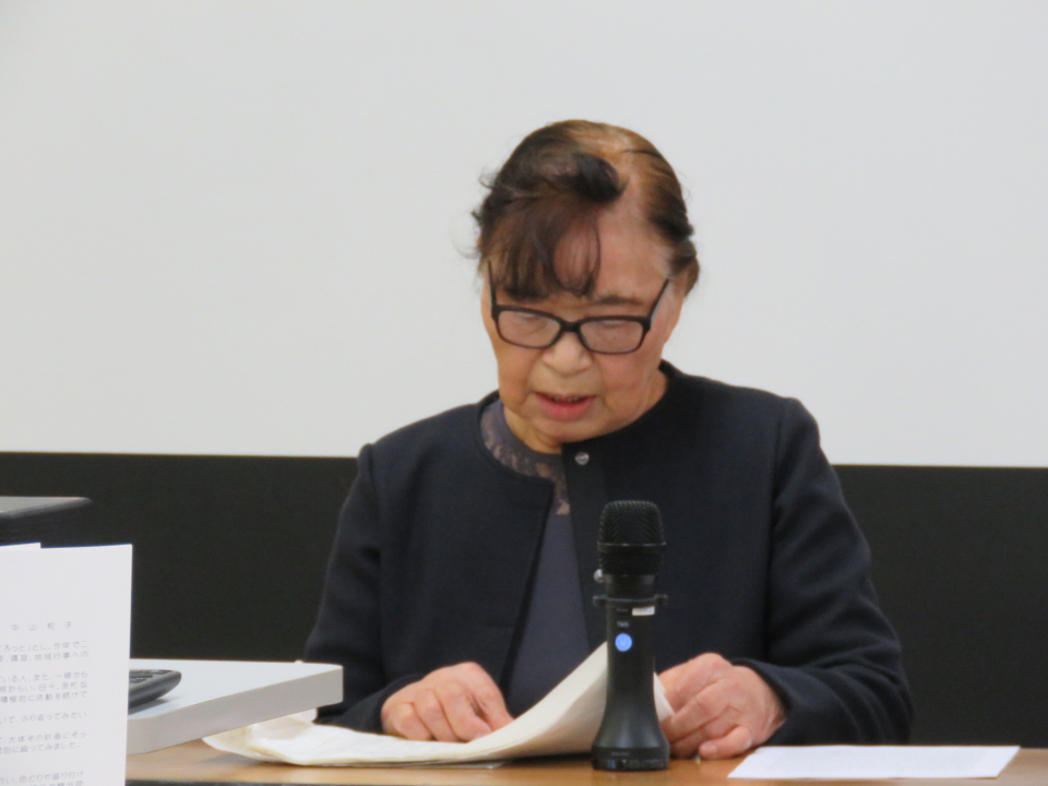 今回は「私の伝えたいこと」ということで、3名の方から、学生の皆さんに伝えたいことを発表していただきました。西春別の佐藤芳枝さんが「私とフラダンス」、上春別の中山和子さんが「グループ活動の歩みについて」、西公民館職員の菅野主任が「だいすき!寿大学」というテーマで、感謝の気持ちや活動経験、交流の思い出など熱意をもって学生に語りかけ、学生たちは感動や笑いを交えながら最後まで熱心に聞き入りました。