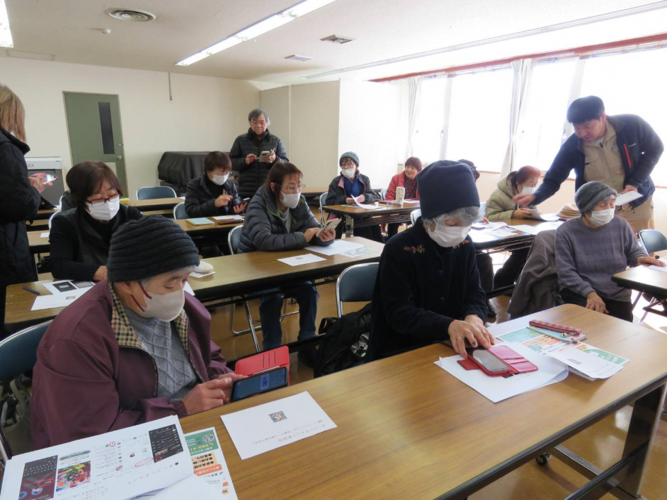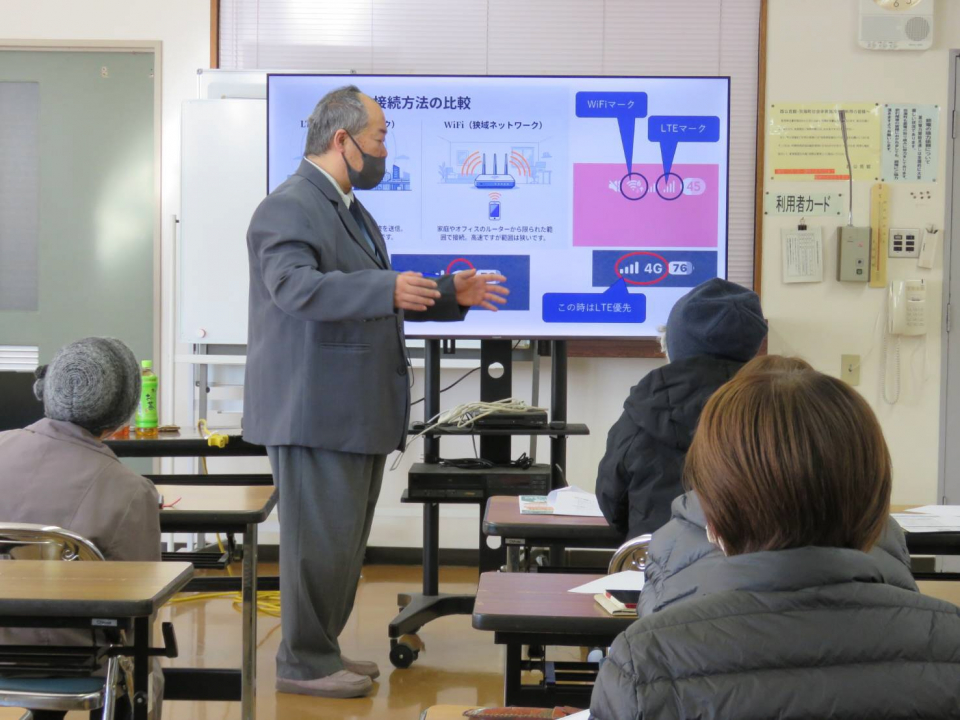 西公民館にて講師を招き「スマホ講習会」を開催しました。モニターでネット接続の仕組みを学んだ後、館内のフリーWi-Fi設定に挑戦。実習ではLINEの友だち登録や写真の送受信といった基本操作を習得しました。