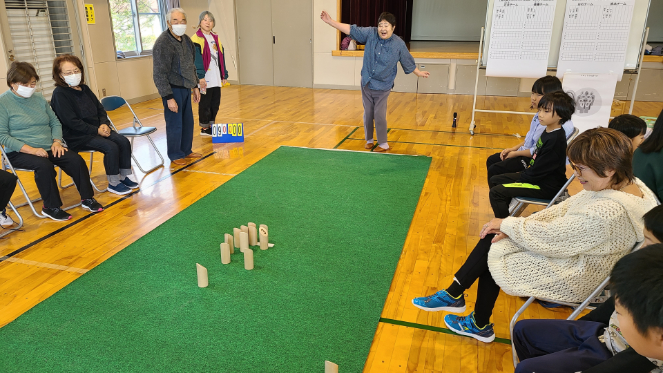 今回は上春別地域センターにて、寿大学の皆さんと上春別地域の子どもたちが、学校の振替休日を活用して世代を超えたモルック交流会を開催しました。