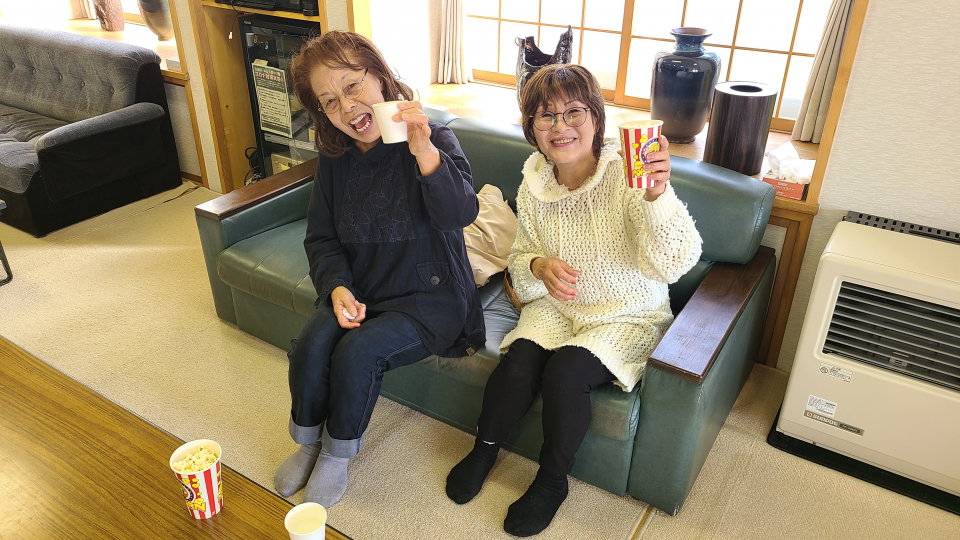 また、お楽しみ喫茶では感謝の気持ちを込めて、子どもたちとわいわいクラブ事務局が「綿あめ」と「ポップコーン」を手作りし、寿大学の皆さんも嬉しそうに味わっていました。