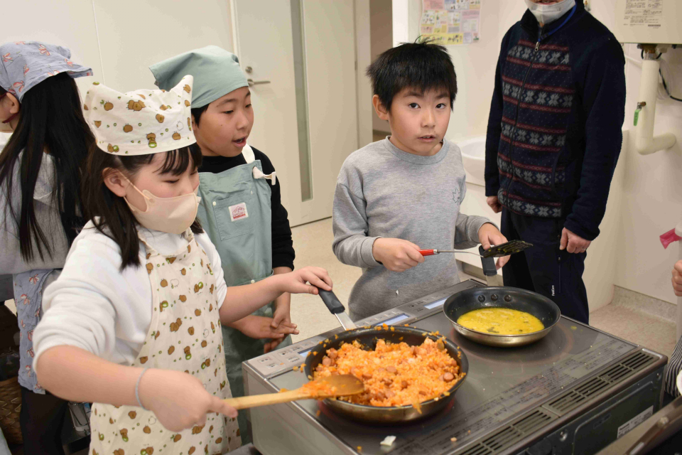 調理は子どもたちを中心に行い、分からないところは職員が指示を出しました。