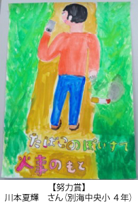 別海消防署では、火災予防の一環として、毎年小中学生を対象に防火ポスターコンクール(後援 別海町教育委員会)を開催しています。