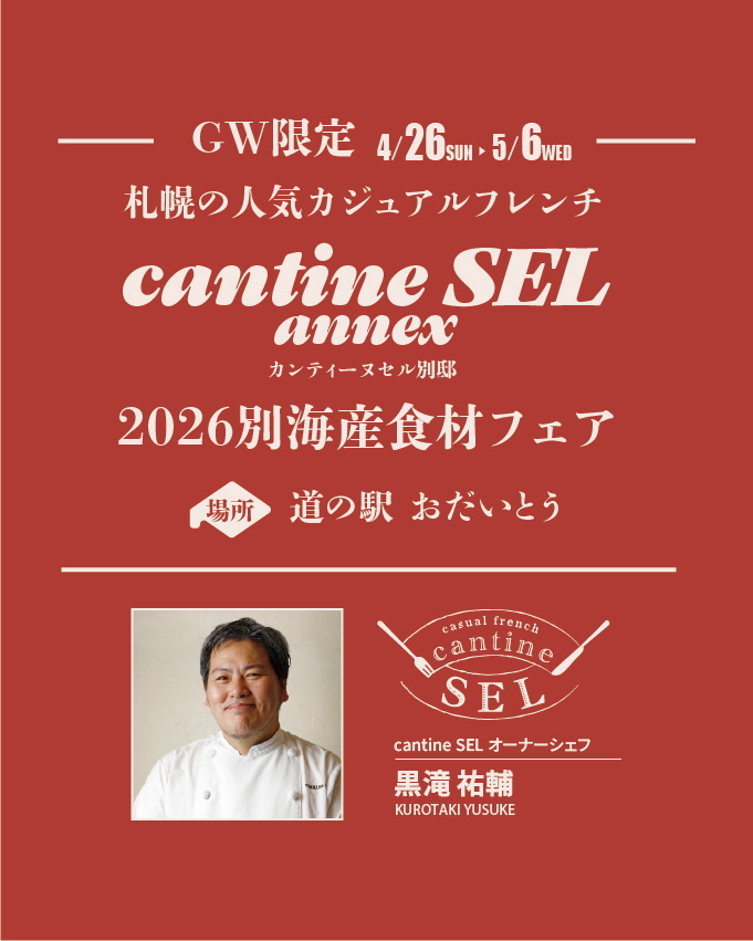 道の駅おだいとうでは、5月6日までのゴールデンウィーク期間中、2026別海産食材フェアと銘打って、札幌の人気カジュアルフレンチの黒滝祐輔氏がプロデュースしたメニューを多数ご用意。