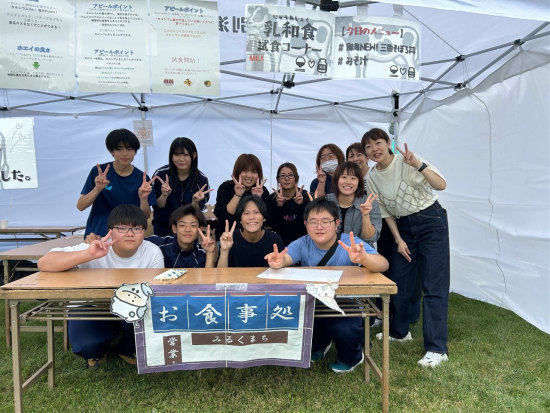 令和7年9月20日に別海町農村広場にで開催された第56回別海町産業祭において、乳和食ブースを出展し、上西春別中学校の生徒が学校の授業で考案した乳和食を来場者に配布しました。